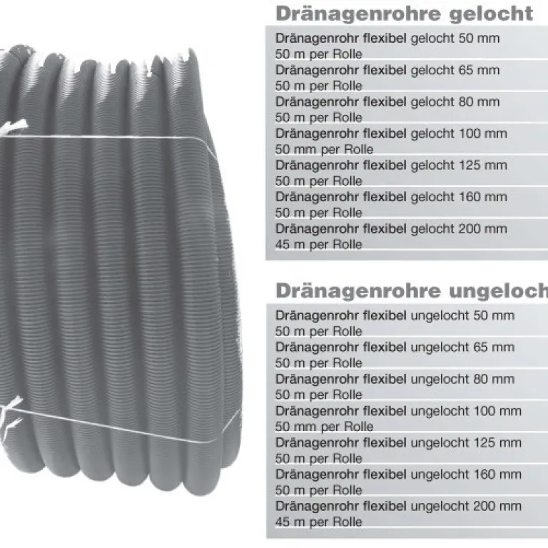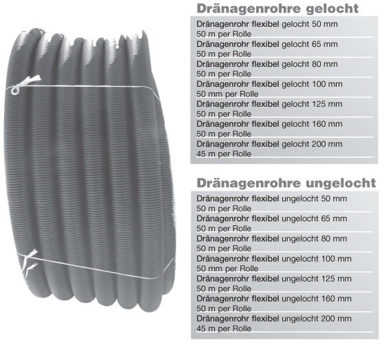 Dränagenrohre gelocht & ungelocht